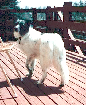 Tucker was a mixed-breed dog, whose mother was a smallish brown "cattle dog" cross belonging to my former technician, Rhonda Miller. God alone knows who his father was: his mother Lady wasn't interested and didn't bother to ask. He was born on October 30, 1984 in a cardboard box on the back porch of Rhonda's house, at the intersection of Route 6 and the Old Spanish Road in Brazos County, Texas. One of a litter of nine puppies, he was the only one who chose a white-collar career as a house dog: all of his siblings ended up as working stock dogs. He came to us on December 19th, 1984, a genuine Christmas puppy.