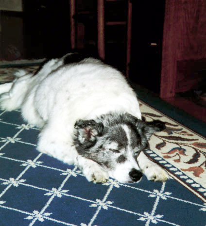 TOP: At age 2 years; BOTTOM: Snoozing peacefully by the fireside, at age 13.