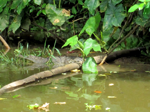 The next day we were set to go to Puerto Limon in Costa Rica. We'd signed up for a trip on the "Tortuguero Canals," which aren't "canals" in the strictest sense. They're actually a set of waterways connected by short channels. I went alone in hopes of seeing some wildlife. I did see a small crocodile, a couple of iguanas, some birds, and a sloth or two. There were allegedly monkeys; if the shaking in the treetops was evidence of their presence, fine, but they weren't easily seen.